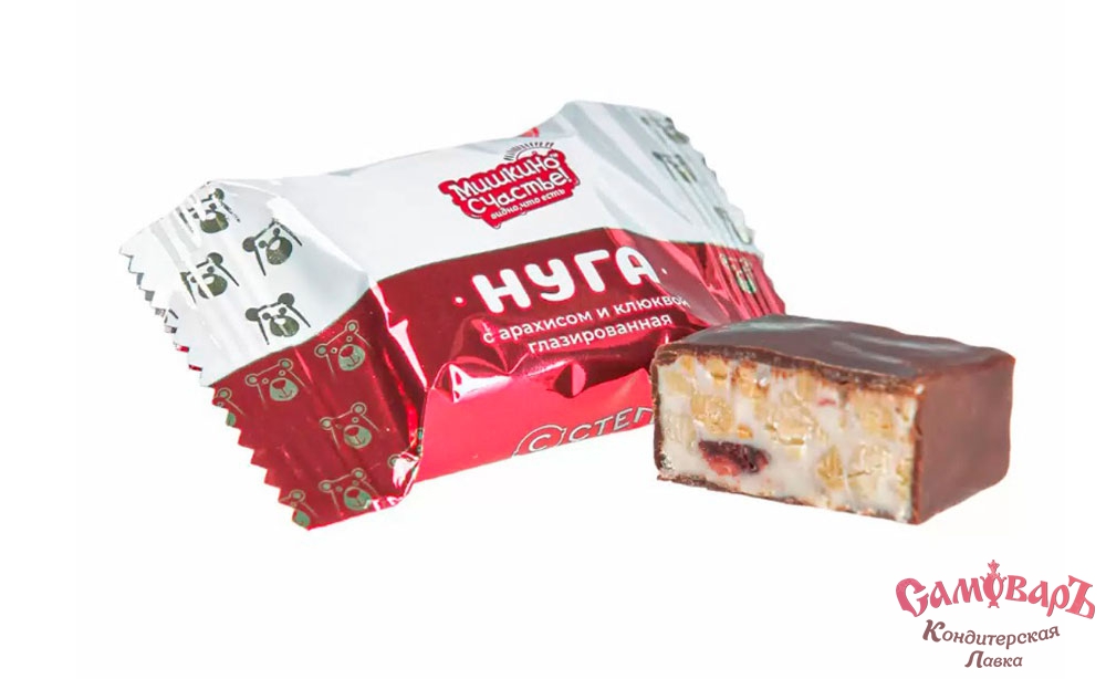 601 Конфеты НУГА с АРАХИСОМ и КЛЮКВОЙ глазир. Мишкино счастье 3кг (1*3бл)