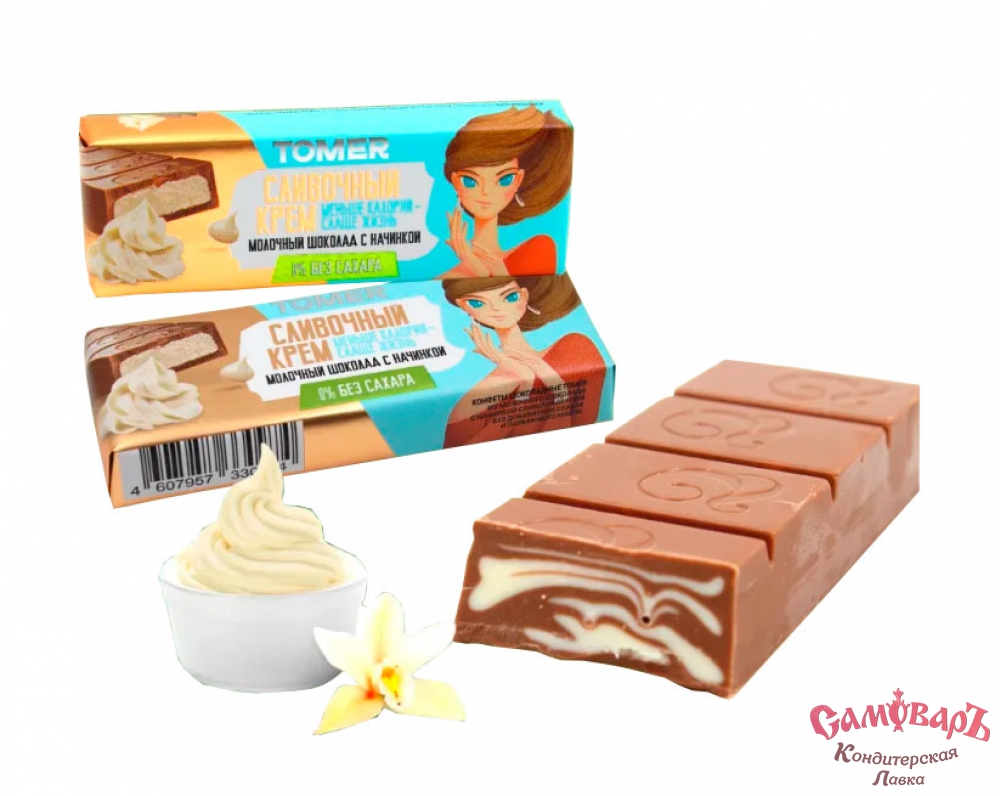 Конфеты 55гр. мол.шок. СЛИВОЧНЫЙ КРЕМ БЕЗ/САХ ТОМЕR (4бл*16шт) (Томер г.Москва)